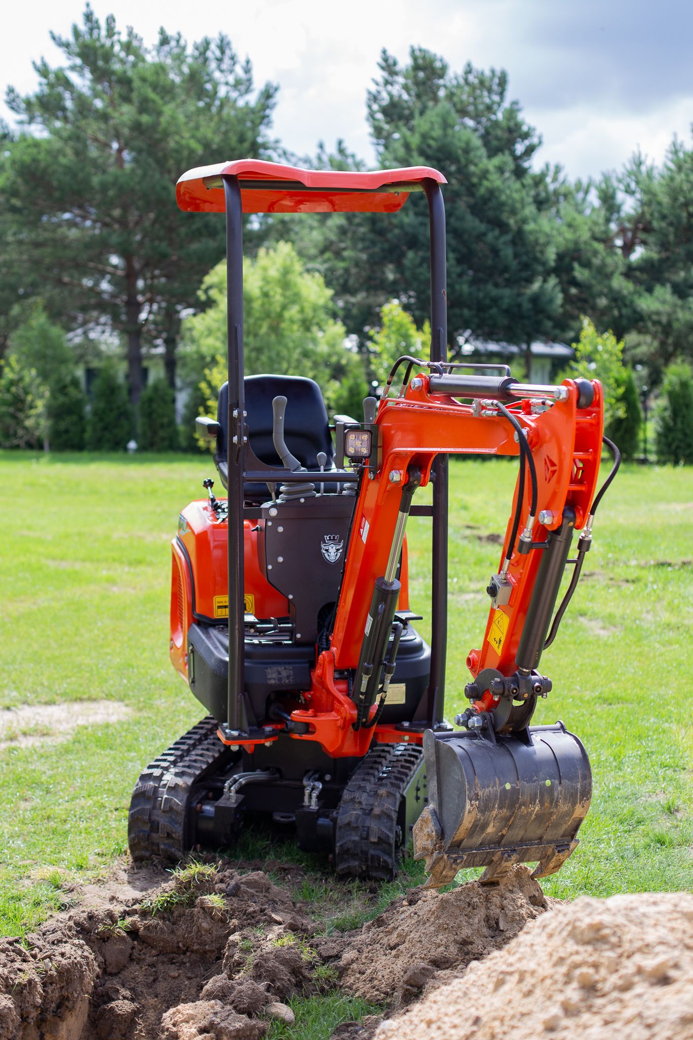Hier haben Sie Spurverstellung 80-95cm. Mit 80cm können Sie in schmalle Platze einfahren, z. B. beim Durchfahren mit dem Bagger durch enge Tore/Türen. Mit 94cm steht der Bagger stabiller. Zum Beispiel bei der Arbeit in einem schroffen Gelände. Die ausfahrbaren Raupen in einem Minibagger erhöhen die Stabilität während der Arbeit. Dadurch kann die Maschine auf schwierigem Gelände wie unebenem oder feuchtem Untergrund arbeiten.